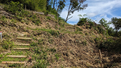 この丘も頂部が削平されて畑となっており、さらに西に続く丘陵との間は堀切状の谷によって画されている。