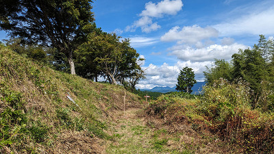 城の西側には、向山と呼ばれる小丘があり、細い尾根により連結している。
