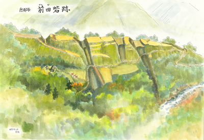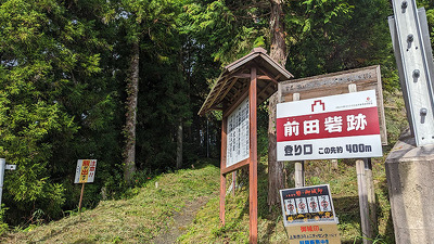 特筆されるのは中央を区画する2本の堀切で、どちらも幅約20m、深さ約8mの箱堀で、両端は竪堀となって南北の斜面に落ちている。竪堀も合わせた延長は100m以上あり、尾根を完全に分断している。このような規模の大きな堀切・整堀は、東美濃では他に類例がなく、城そのものも有数の規模である。前田砦は、武田領と岩村城をつなぐことを目的として、武田によって築城もしくは改修を受けた可能性が高い。