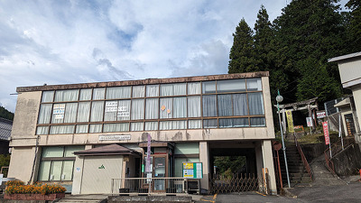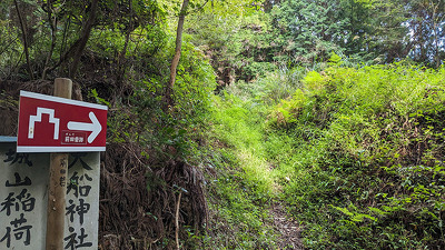 JAひがしみの上村支店横の大船神社参道(表示あり)が登城口