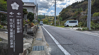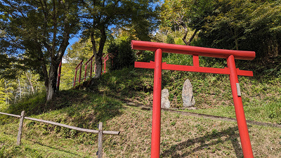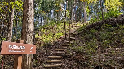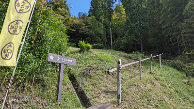 かえでホールの南西200m道沿いに登城口(表示あり)